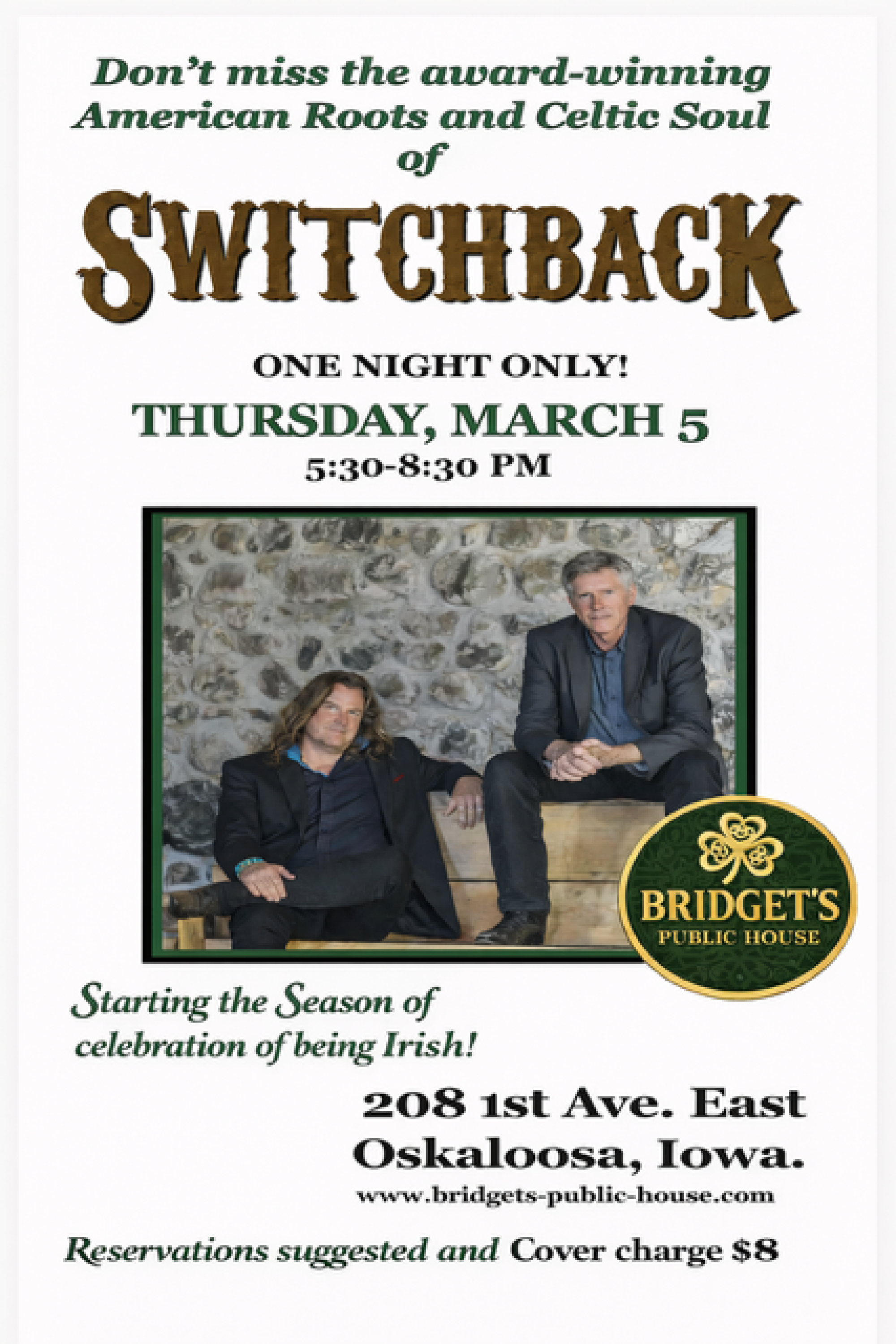 Starting the Season of celebration of being Irish. Reservation suggested & cover charge $8