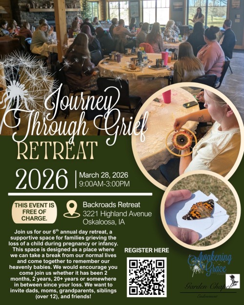This annual Awakening Grace - Journey Through Grief Day Retreat is about creating a safe space for grieving families to connect and heal. This space is specifically designed for anyone who has lost a child during pregnancy or infancy. We would encourage you to join us regardless of how long ago your loss was, whether it has been 2 months, 2 years, 20 years, or somewhere in between.